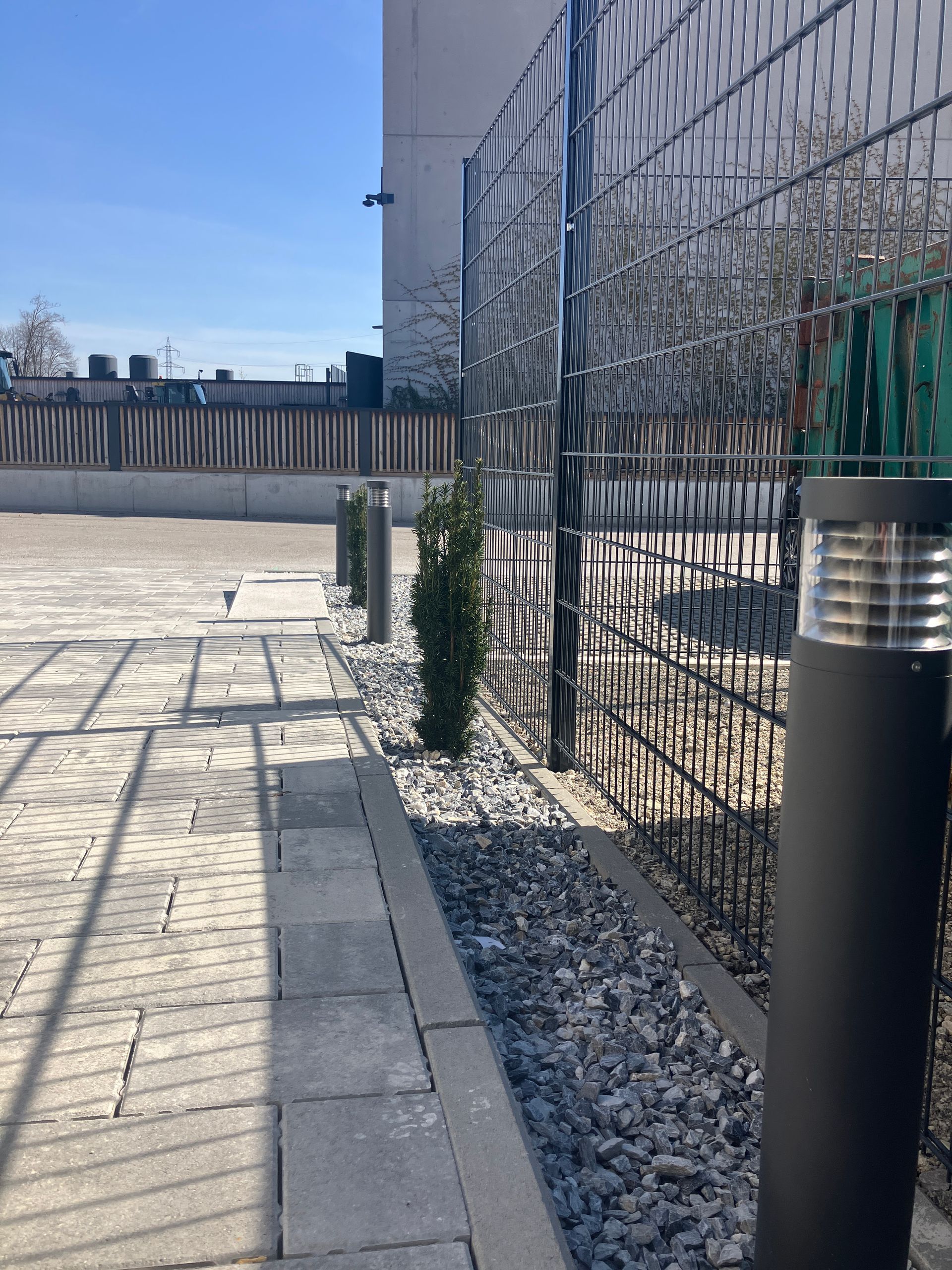 Ein besonderes Highlight stellt der neugestaltete Eingangsbereich dar: Mit modernen Pflastersteinen, stilvoll integrierter Beleuchtung und sorgfältig ausgewählter Bepflanzung haben wir ein einladendes Entree geschaffen, das Funktionalität und Ästhetik vereint.